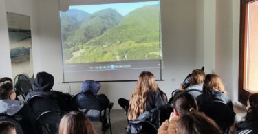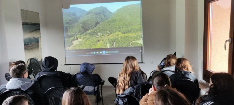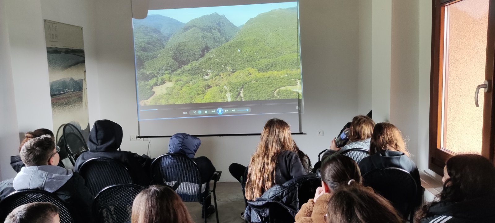Στη συνέχεια, στην αίθουσα προβολών με τη βοήθεια της τεχνολογίας (προβολή βίντεο, παρουσίαση powerpoint) οι μαθητές και οι μαθήτριες ενημερώθηκαν για την ιστορία και τη γεωγραφία της ευρύτερης περιοχής του Ολύμπου, για τον παρακείμενο αρχαιολογικό χώρο και την Ακρόπολη των Λειβήθρων καθώς και για διάφορα χρηστικά αντικείμενα της αρχαιότητας, αλλά και για τα εργαστήρια παραγωγής πήλινων αγγείων και για τον τρόπο κατασκευής, διακόσμησης αλλά και ψησίματος των αγγείων σε φούρνους.