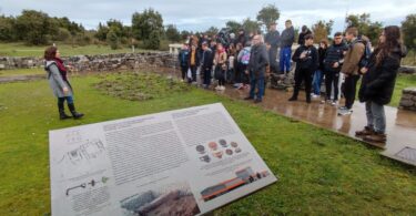 Τέλος, οι μαθητές και οι μαθήτριες πραγματοποιώντας ένα ταξίδι στον χρόνο, ξεναγήθηκαν: α.στην αναπαράσταση αιθρίου πλούσιας αγροικίας των ύστερων κλασικών χρόνων (εποχής Φιλίππου Β΄) με κεντρική αυλή, πιθεώνα και πύργο-οινοποιείο, η οποία βρέθηκε στην περιοχή της σημερινής Σκοτίνας, καλλιεργούσε αμπέλια και λειτουργούσε ως μεγάλη οινοπαραγωγός μονάδα και β. στην αναπαράσταση οικίας από τον Πλαταμώνα του 8ου αι. π.Χ. (ομηρική εποχή) που κατασκευάστηκε με τεχνικές φυσικής δόμησης με ένα δωμάτιο και κεντρική εστία.