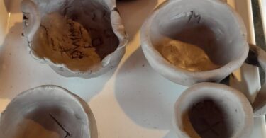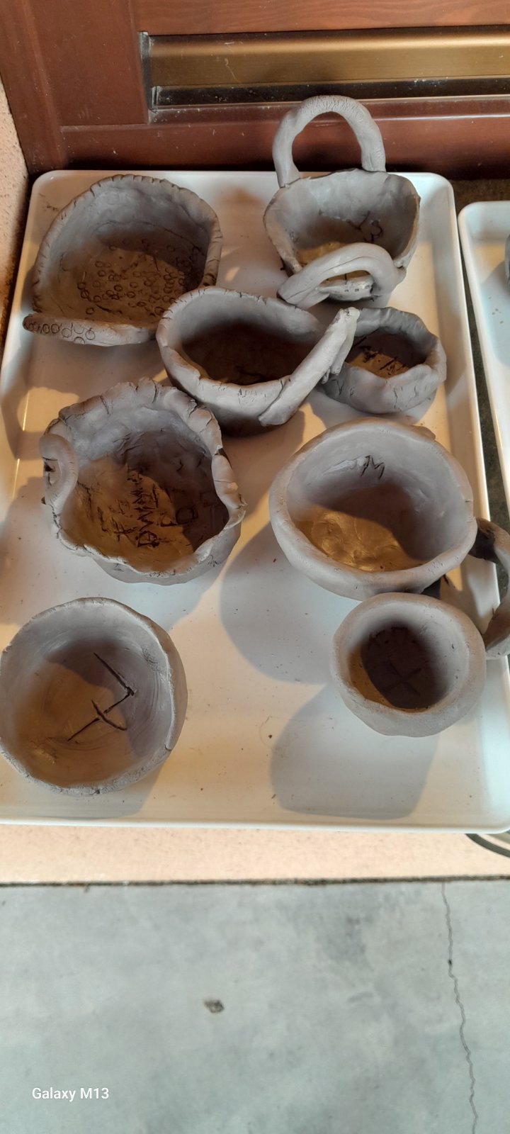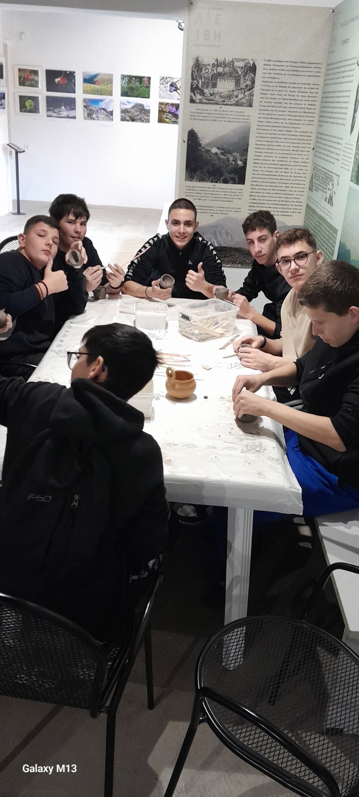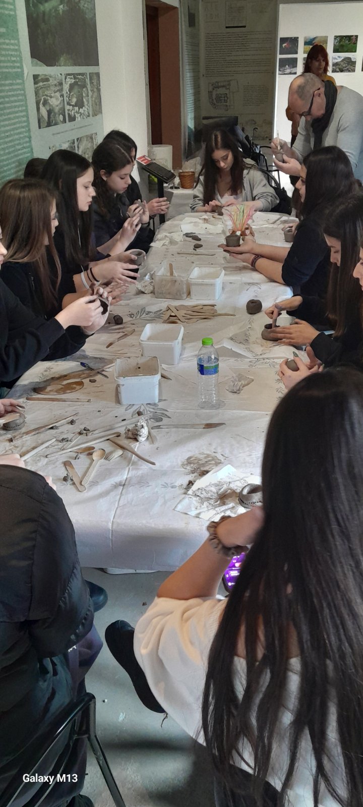 Ακολούθως, συμμετείχαν στο εργαστήριο αγγειοπλαστικής, όπου κατασκεύασαν τα δικά τους χειροποίητα πήλινα αγγεία με τη μέθοδο της σφαίρας ακολουθώντας με προσοχή τις οδηγίες και τις συμβουλές που τους έδινε η υπεύθυνη του προγράμματος. Στη συνέχεια, τα διακόσμησαν και τα σφράγισαν με τη σφραγίδα/σήμα των Λειβήθρων, γράφοντας πάνω τους τα δικά τους συνθήματα. Με ιδιαίτερη προσοχή φύλαξαν τα αγγεία τους, για να τα πάρουν μαζί τους, όταν θα φεύγαμε.